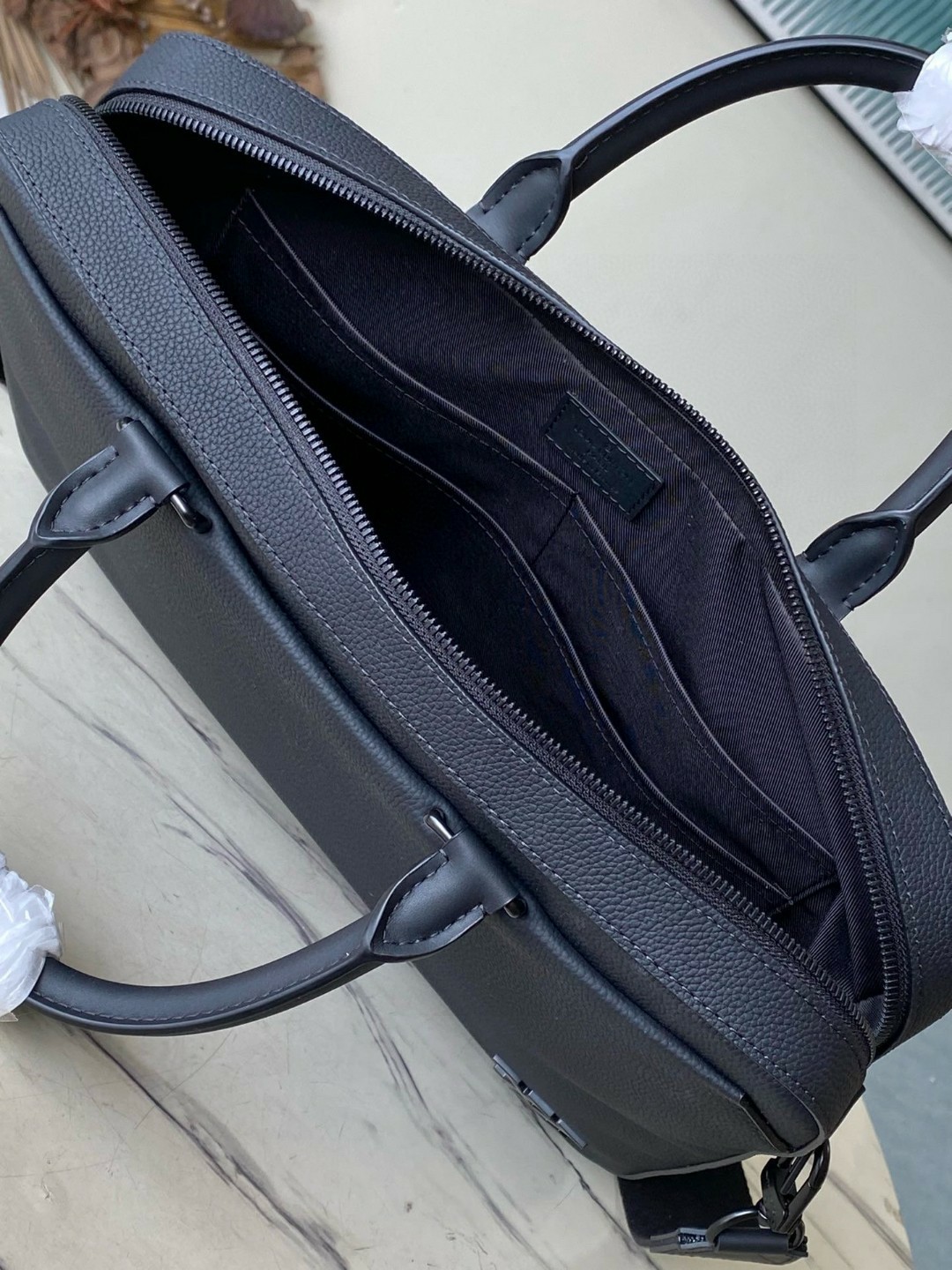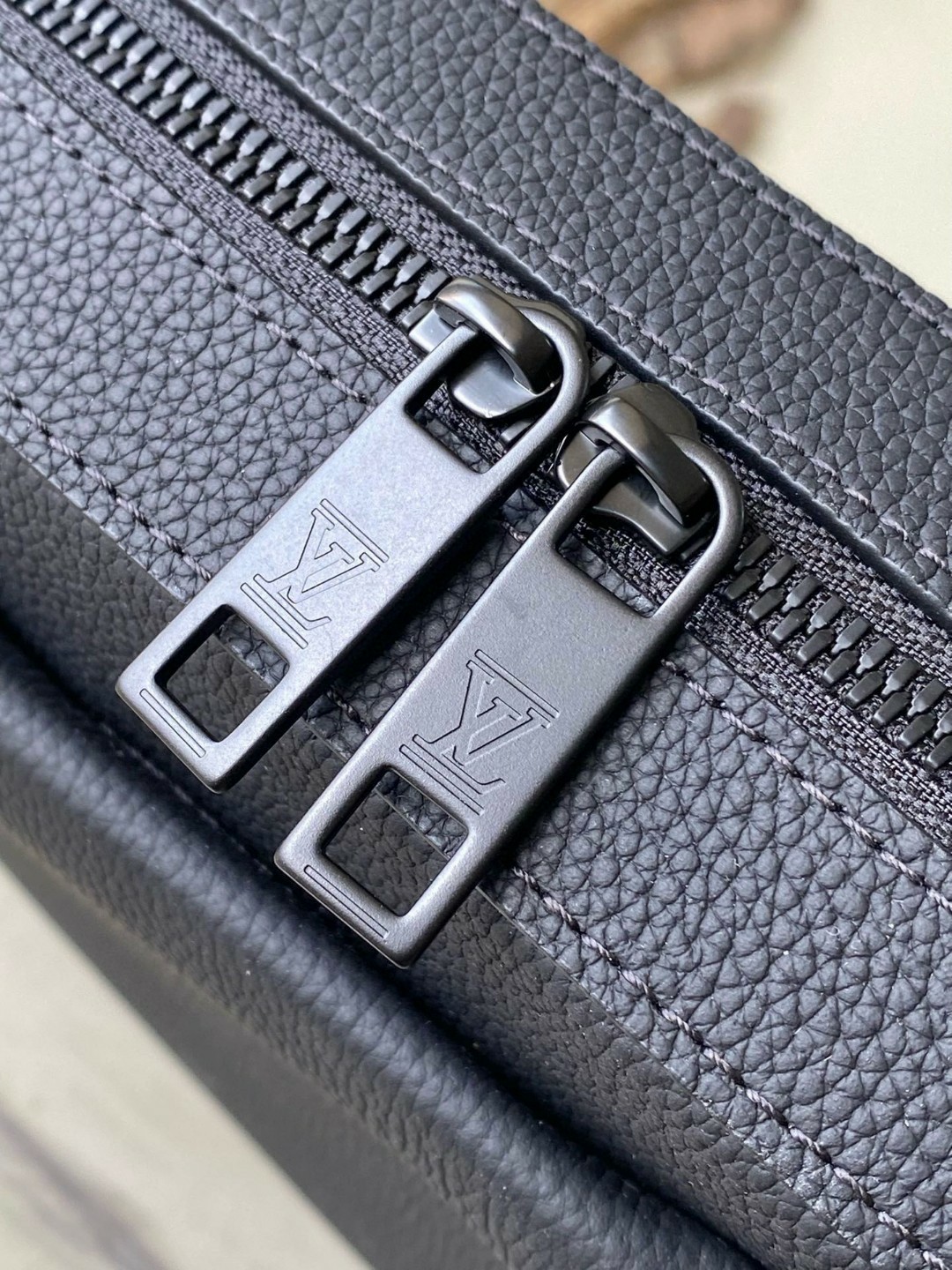 모던한 실루엣과 스마트한 기능이 어우러진 파일럿 브리프케이스. 카우하이드 가죽 소재. 다수의 내부 포켓과 자석형 잠금장치가 달린 수납공간에 소지품을 깔끔하게 정돈하고 손쉽게 넣고 뺄 수 있는 디자인. LV 에어로그램 컬렉션의 시그니처인 톤온톤의 LV 이니셜과 사선으로 재단한 모서리 디테일이 돋보이는 앞면 포켓.