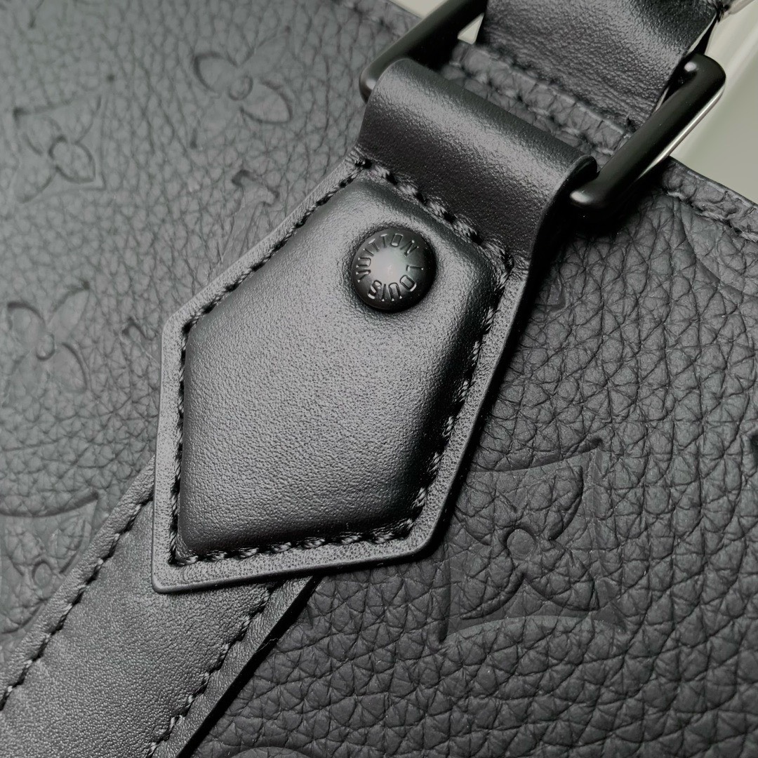 남성적인 매력을 발산하는 삭 플라 24H 토트. 모노그램을 양각으로 새긴 토뤼옹 가죽 소재. 귀중품을 안전하게 보관할 수 있는 지퍼형 포켓 등 다수의 포켓을 갖춘 넓은 내부 구조. 두 개의 짧은 상단 핸들을 손으로 들어 휴대하거나 두 개의 긴 핸들을 사용하여 어깨에 걸칠 수 있는 아이템.