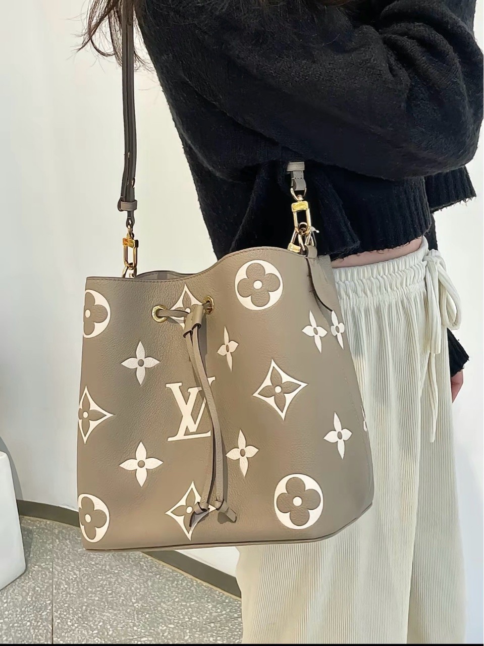 강렬한 LV 이니셜 및 모노그램 플라워 모티프가 스타일리시한 매력을 자아내는 네오노에 MM 버킷 백. 가죽에 모티프를 프린트한 후 양각 처리하여 시각적인 효과를 한층 강조한 디자인. 조절형 스트랩을 활용하여 숄더 백이나 크로스 바디 백으로 다양하게 연출 가능한 아이템. 귀중품을 안전하게 보관할 수 있는 지퍼형 내부 포켓.