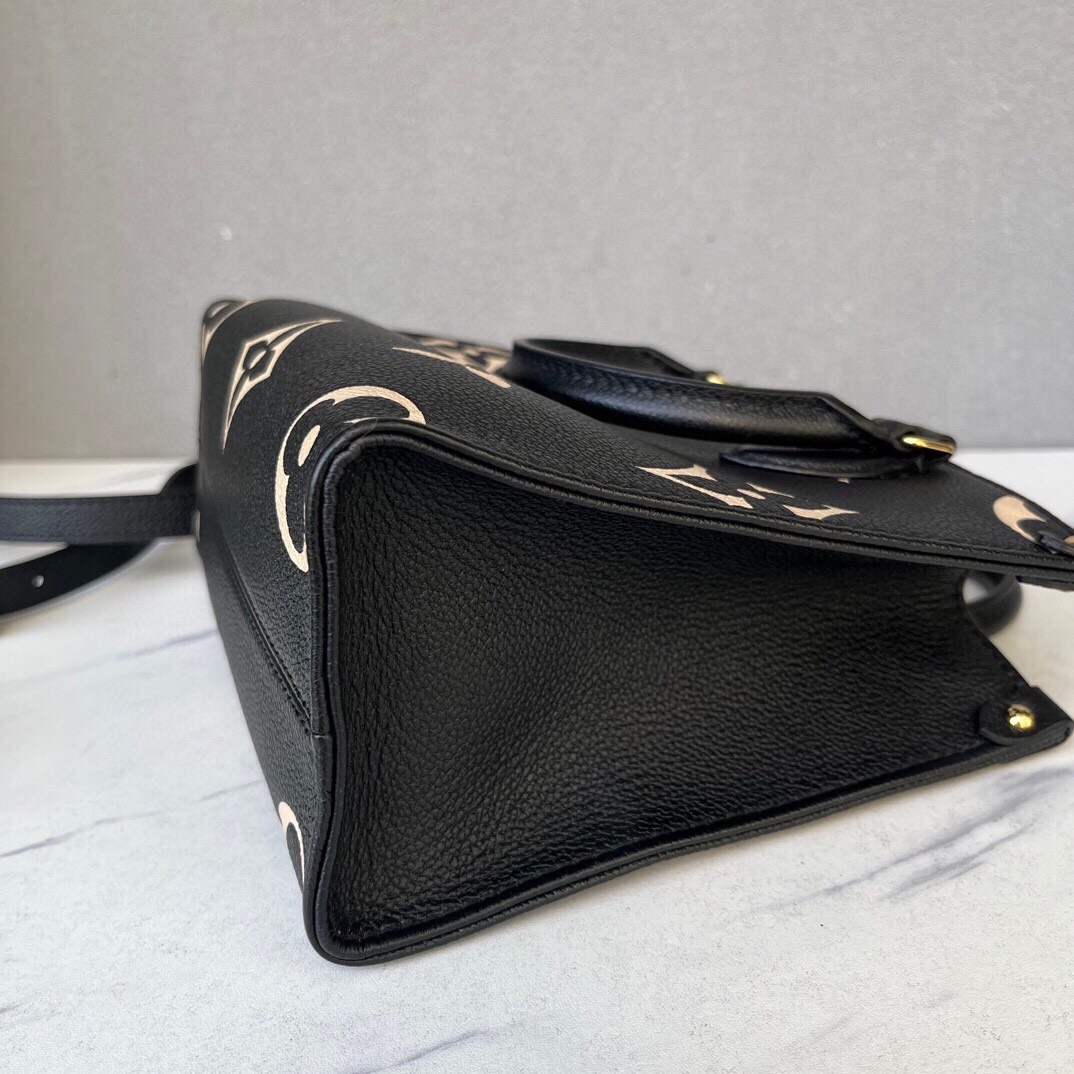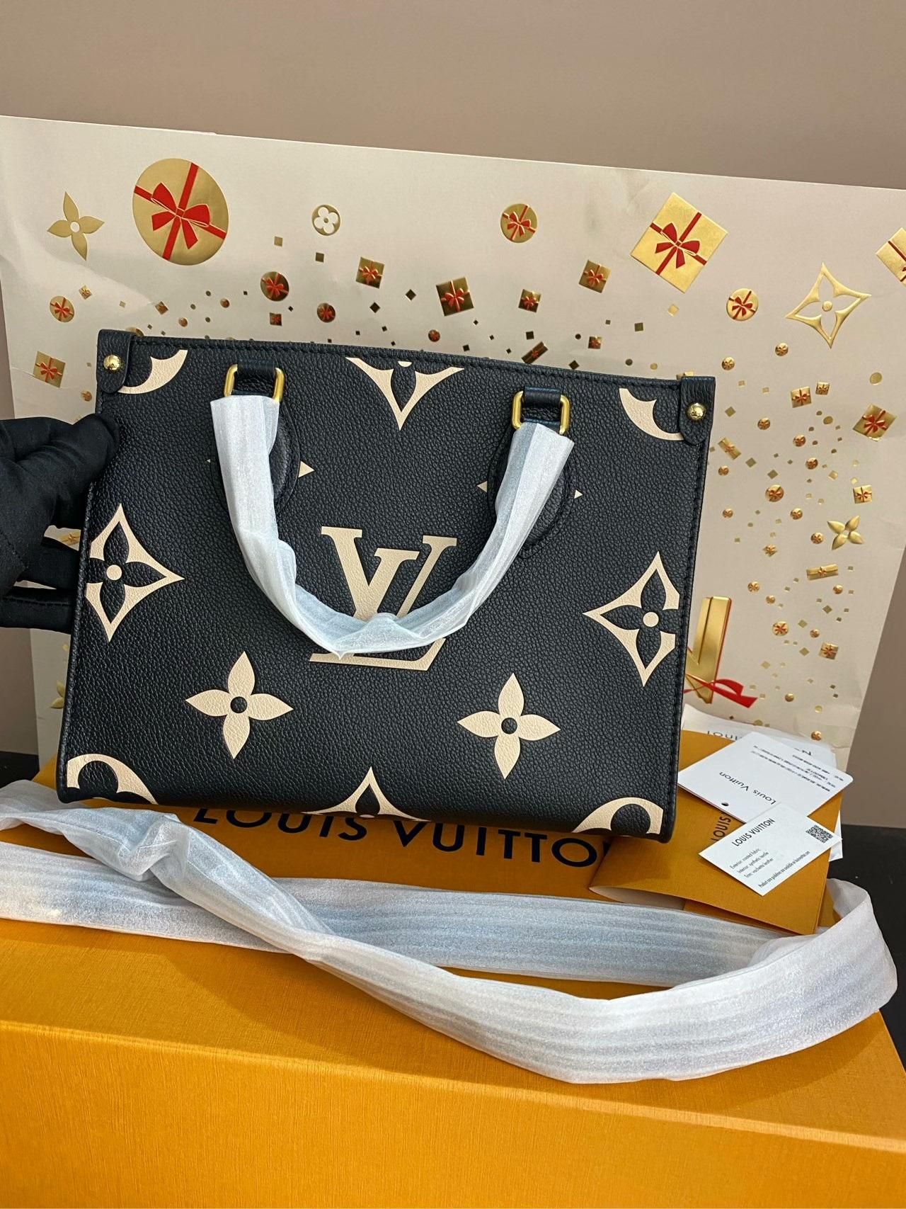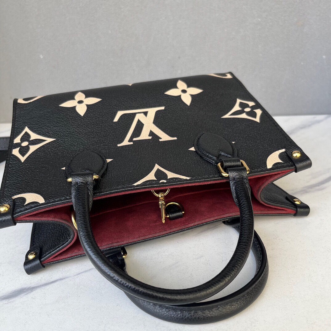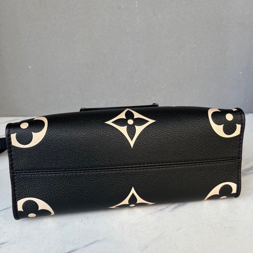 양각 처리된 하우스의 시그니처 가죽 소재에 상징적인 모노그램 모티프를 대조적인 색상의 패턴으로 구현한 활용도 높은 온더고 PM(OnTheGo PM) 토트. 고급스러운 골드 색상의 하드웨어로 포인트를 준 세련된 데일리 아이템. 연접식 상단 핸들 및 조절형 스트랩을 활용하여 다양한 방식으로 연출할 수 있는 스타일.