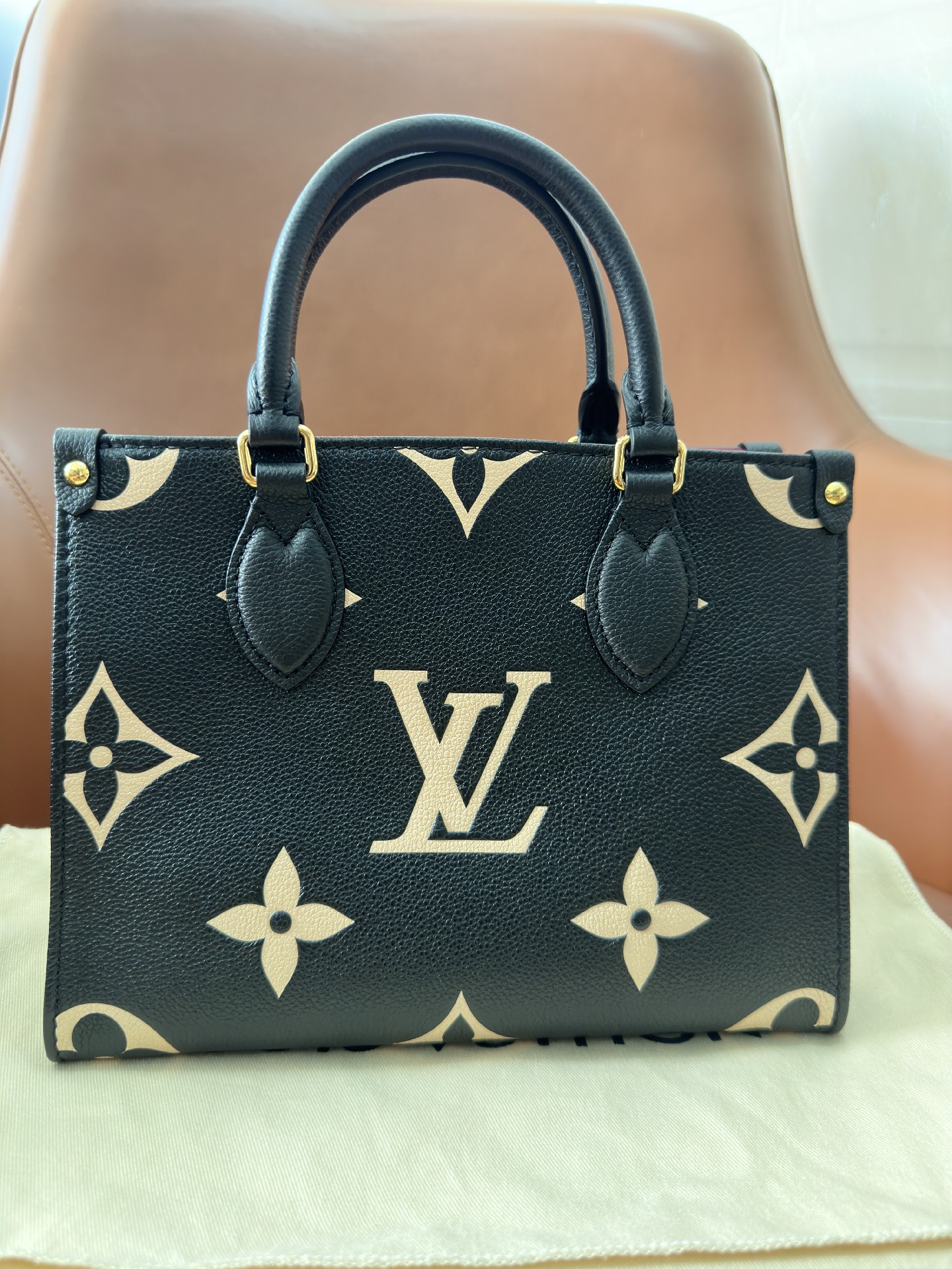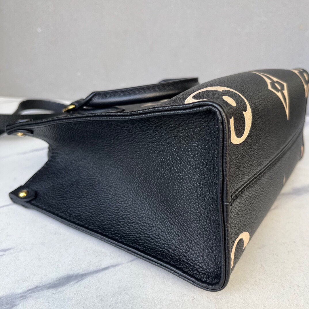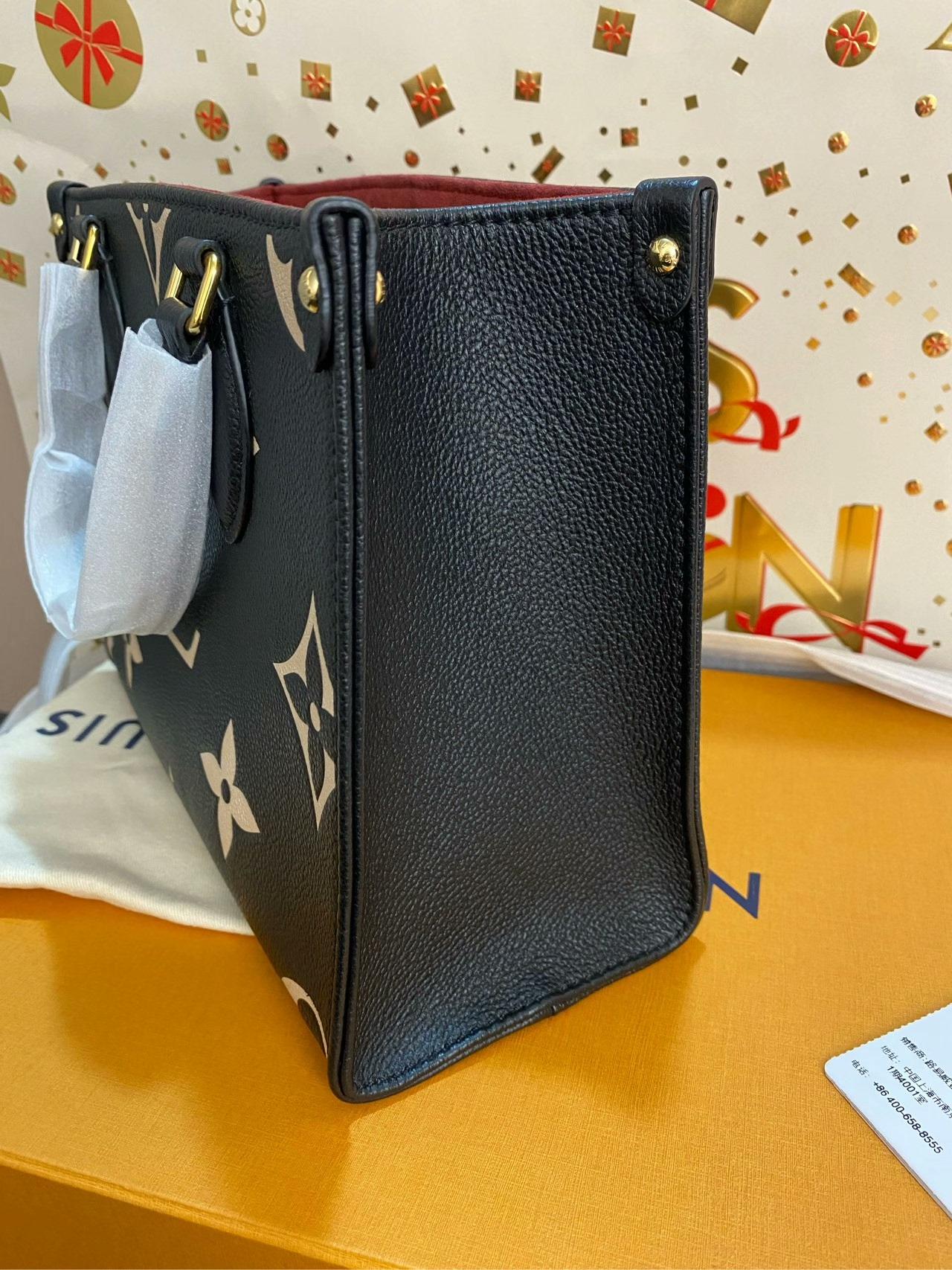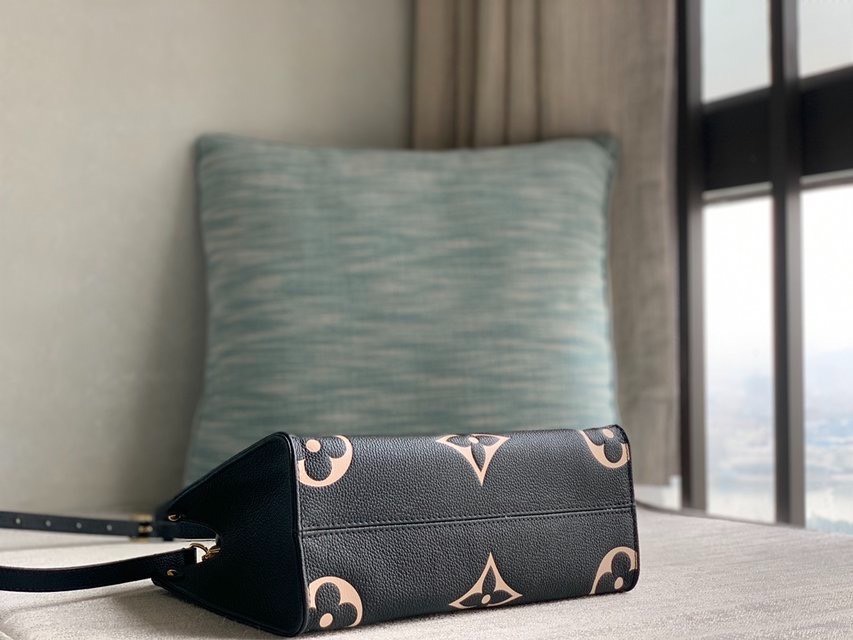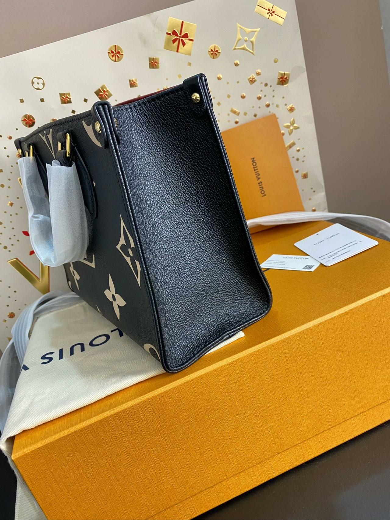 양각 처리된 하우스의 시그니처 가죽 소재에 상징적인 모노그램 모티프를 대조적인 색상의 패턴으로 구현한 활용도 높은 온더고 PM(OnTheGo PM) 토트. 고급스러운 골드 색상의 하드웨어로 포인트를 준 세련된 데일리 아이템. 연접식 상단 핸들 및 조절형 스트랩을 활용하여 다양한 방식으로 연출할 수 있는 스타일.