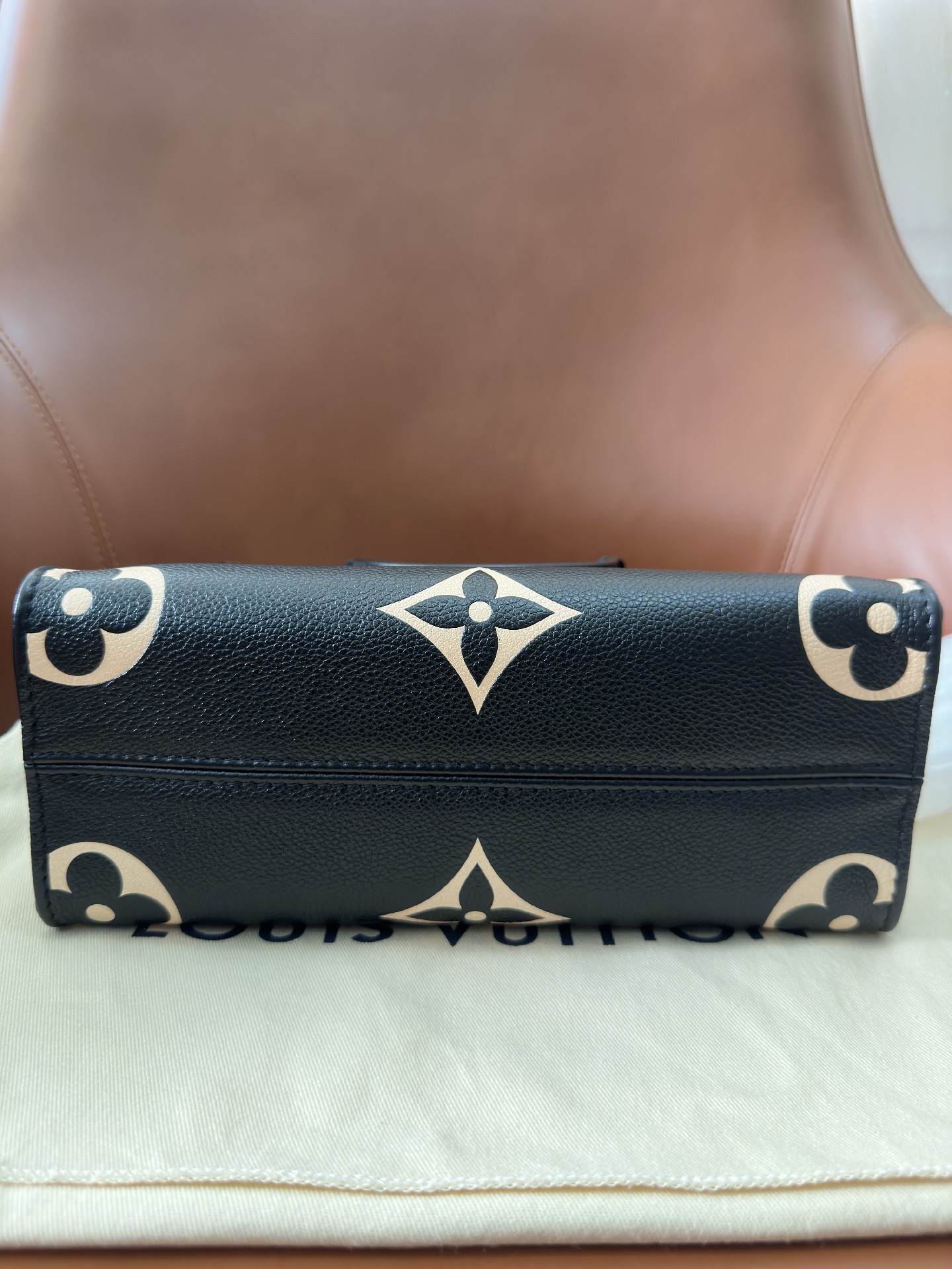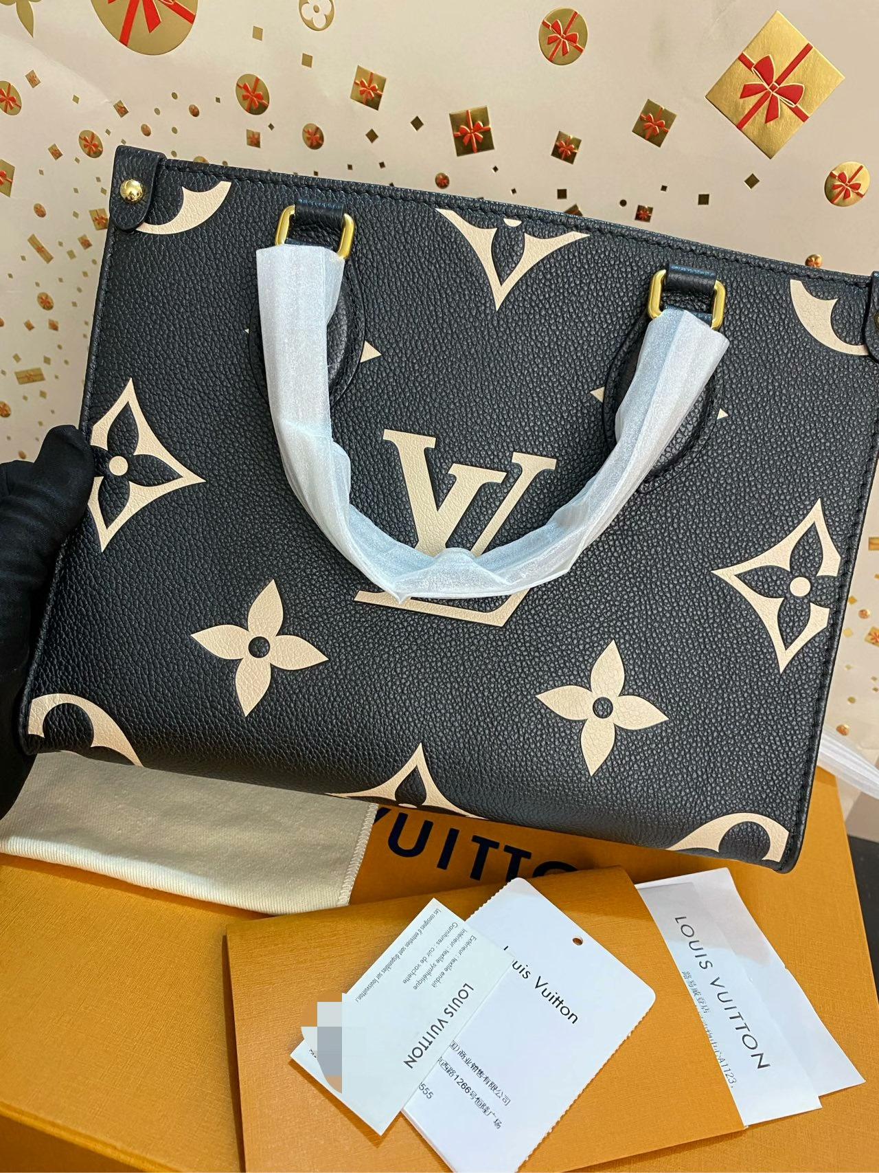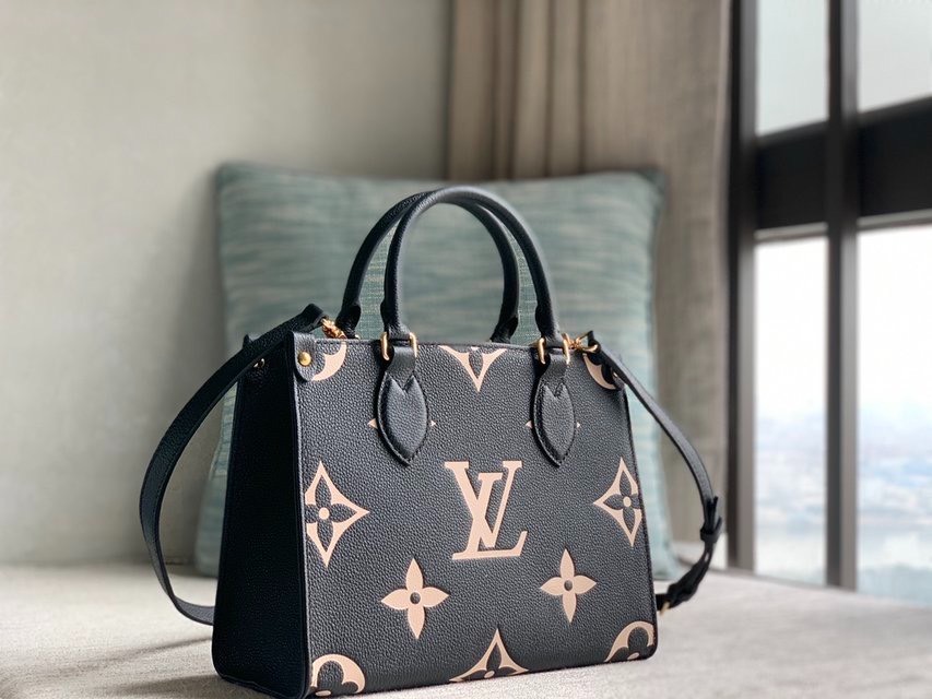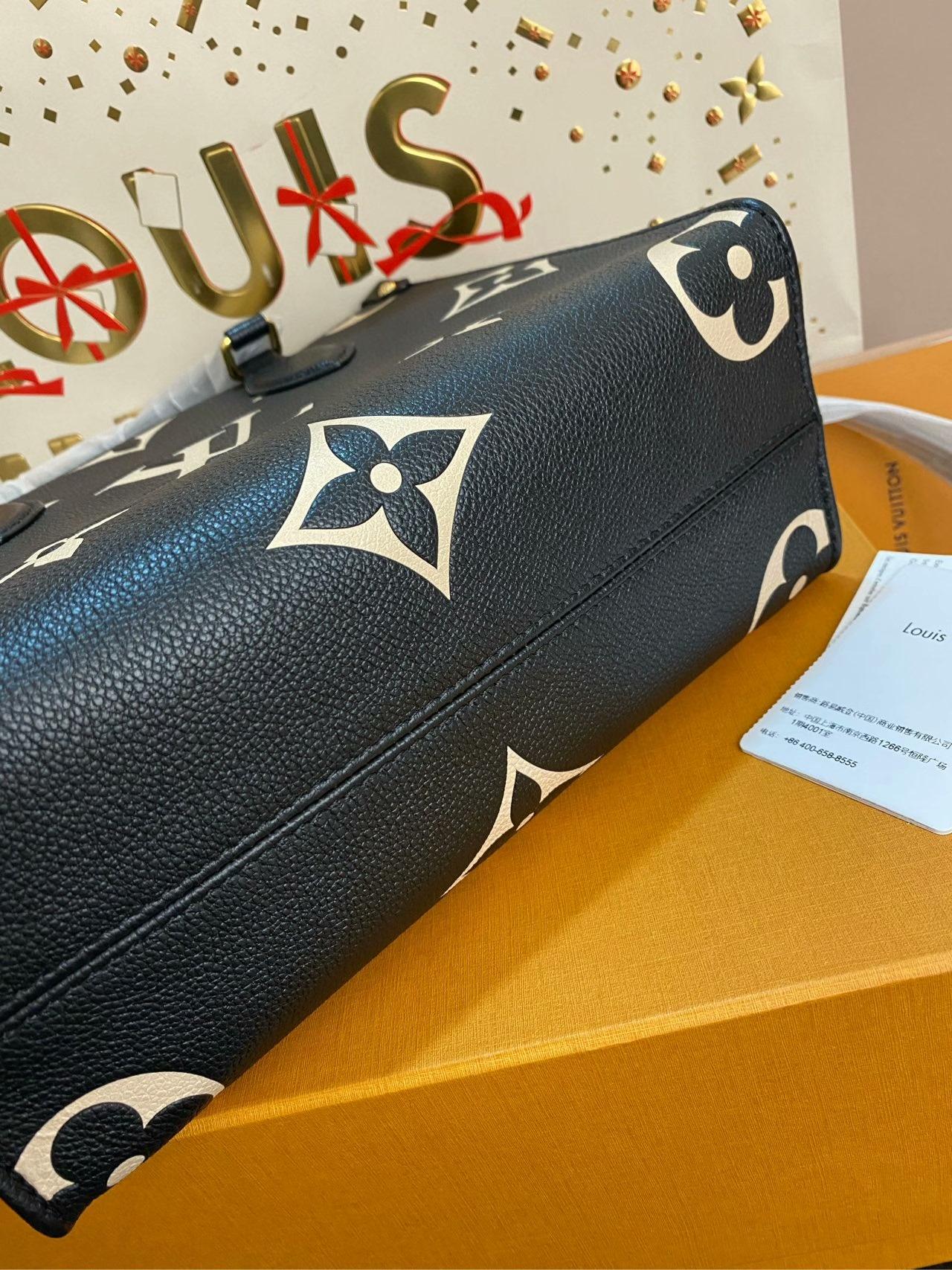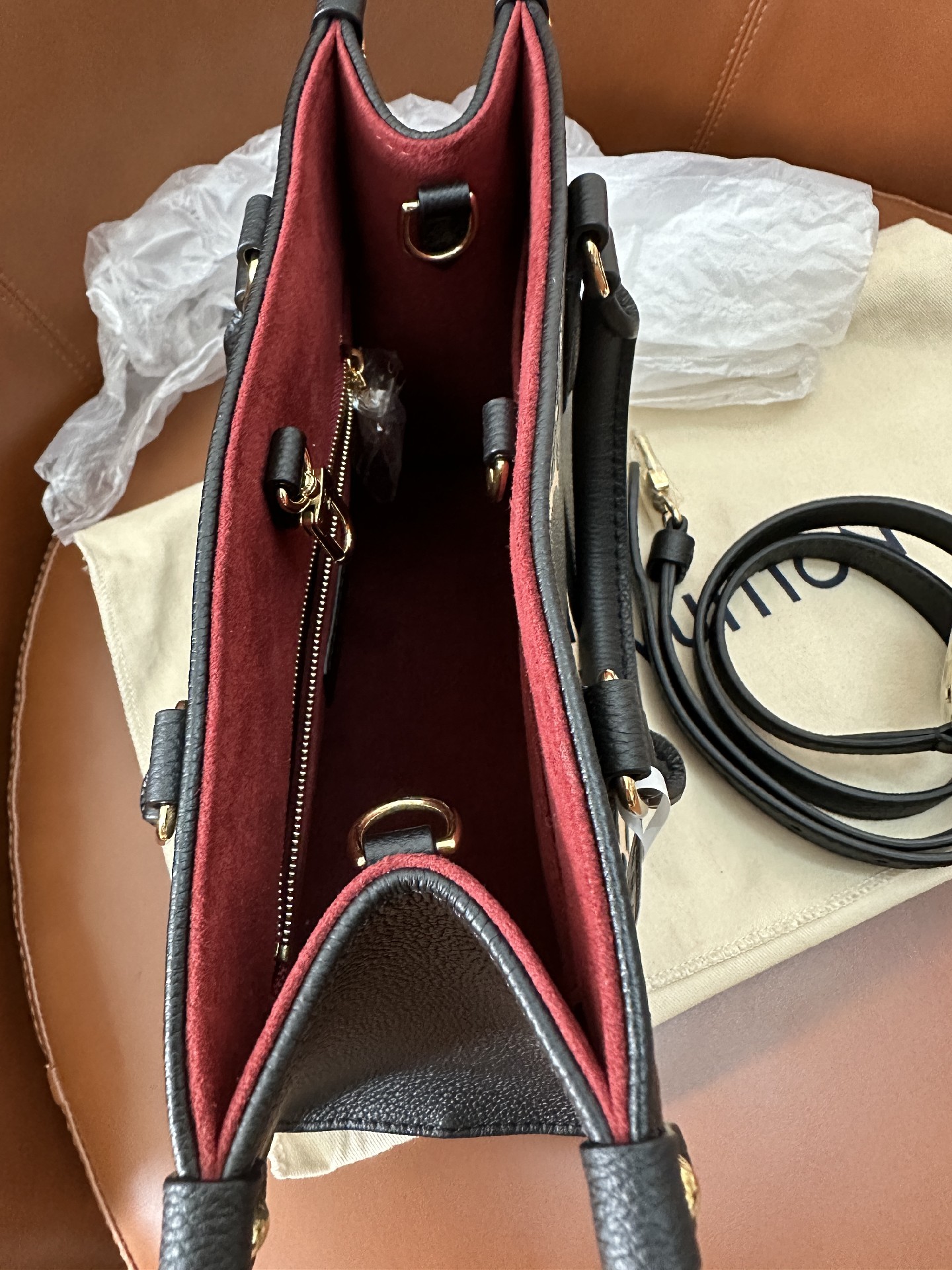 양각 처리된 하우스의 시그니처 가죽 소재에 상징적인 모노그램 모티프를 대조적인 색상의 패턴으로 구현한 활용도 높은 온더고 PM(OnTheGo PM) 토트. 고급스러운 골드 색상의 하드웨어로 포인트를 준 세련된 데일리 아이템. 연접식 상단 핸들 및 조절형 스트랩을 활용하여 다양한 방식으로 연출할 수 있는 스타일.