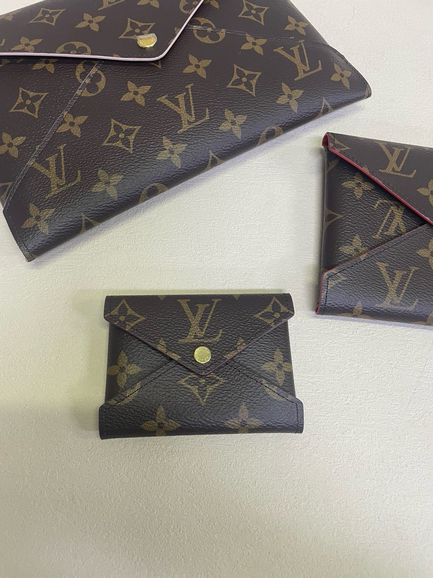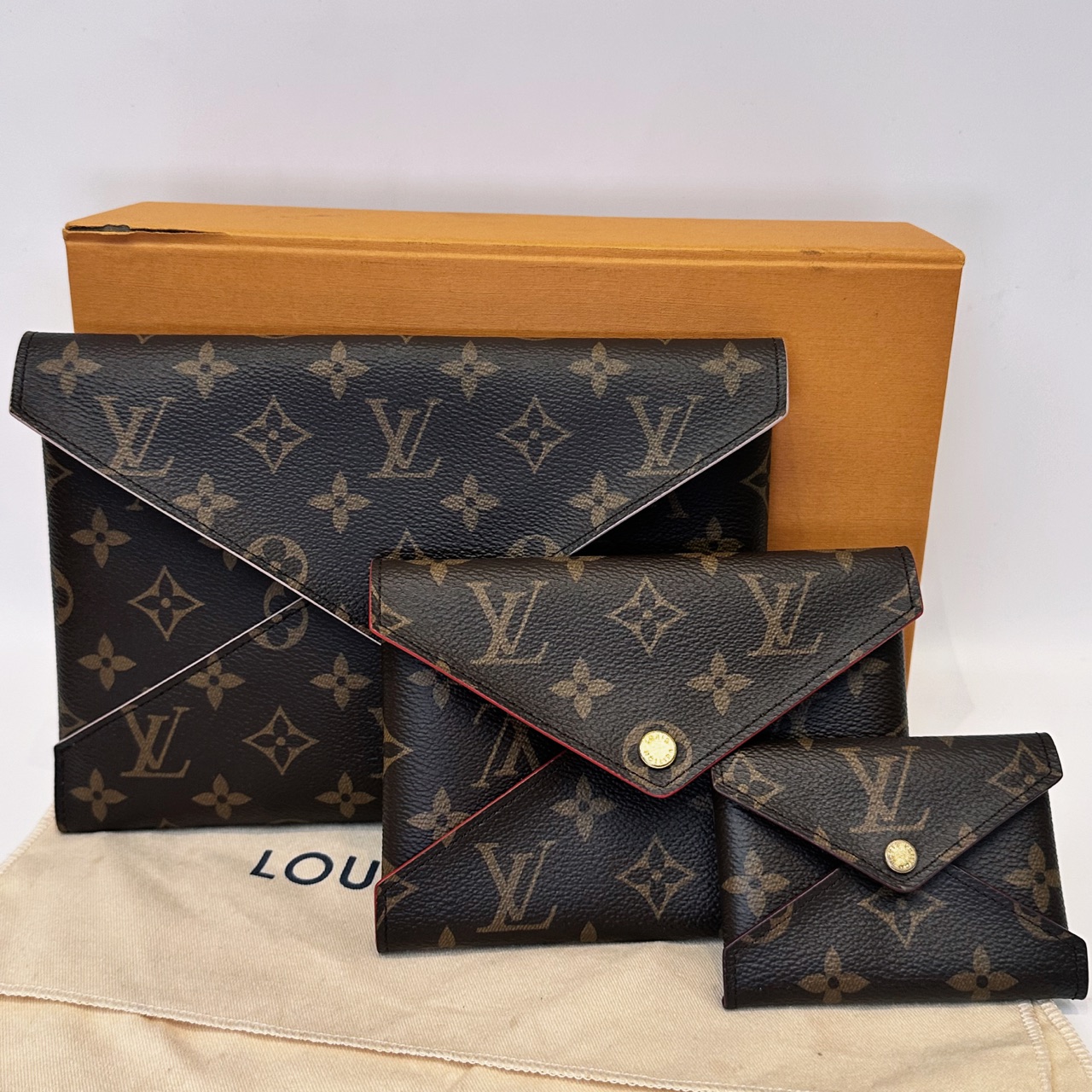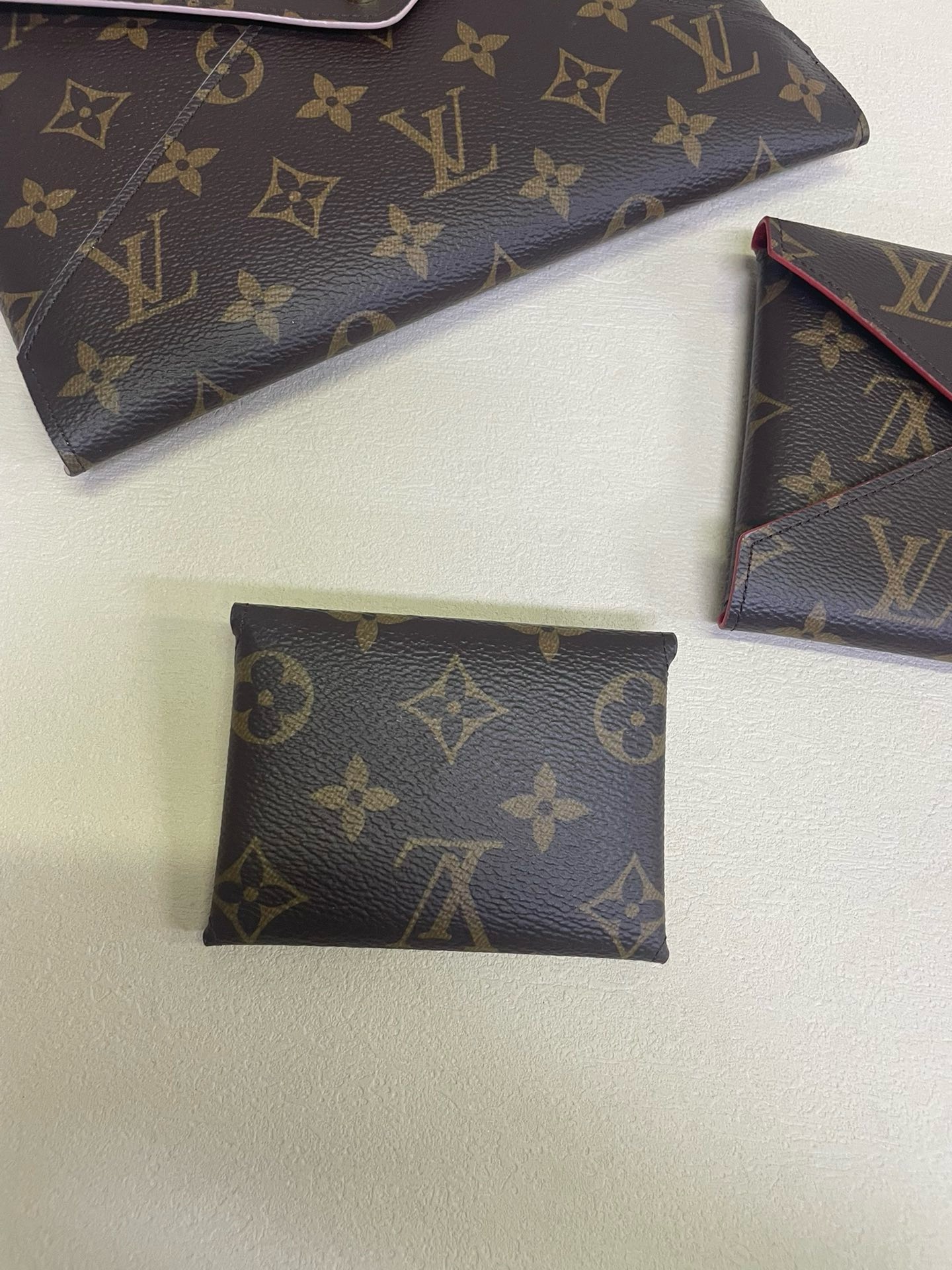러시아의 마트료시카 인형처럼 차곡차곡 넣을 수 있는 세 개의 엔벨로프 파우치로 구성된 키리가미 포쉐트. 가장 큰 크기에는 미니 태블릿, 서류, 립스틱, 수표책 등 다양한 일상 소지품을, 중간 크기에는 여권이나 열쇠를, 작은 크기에는 카드 또는 동전을 보관할 수 있는 아이템.