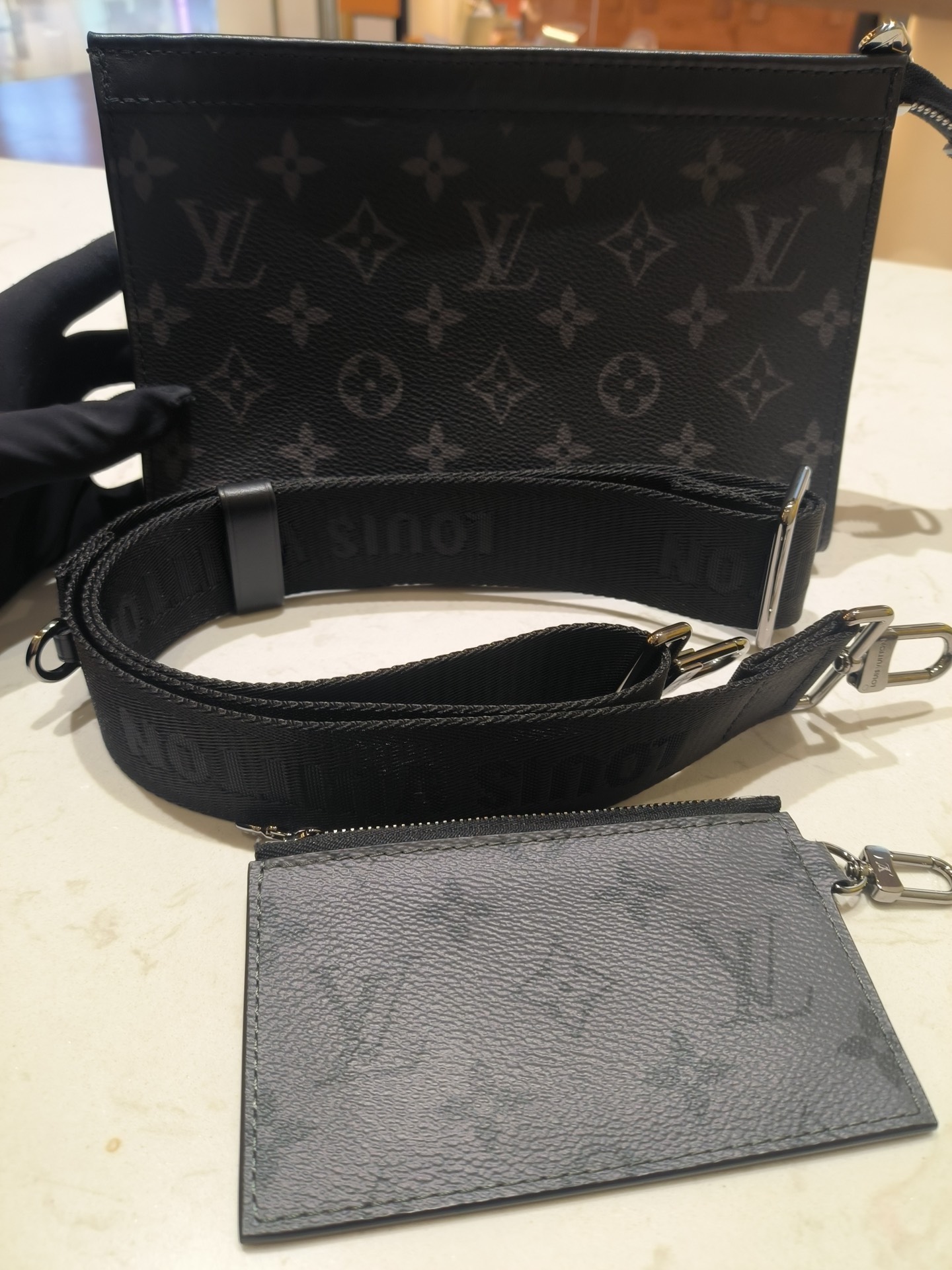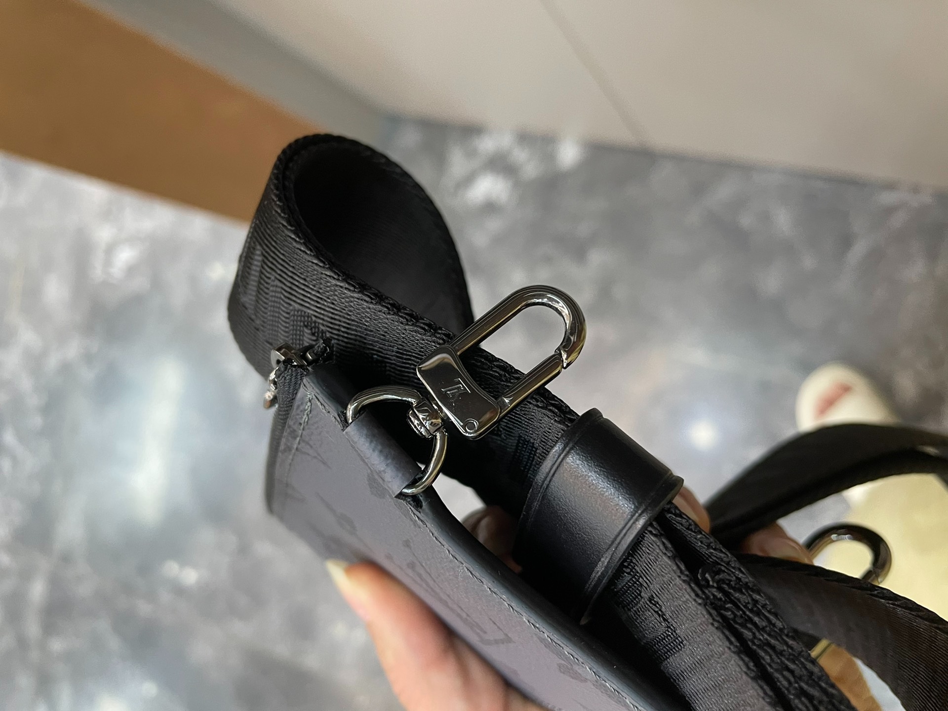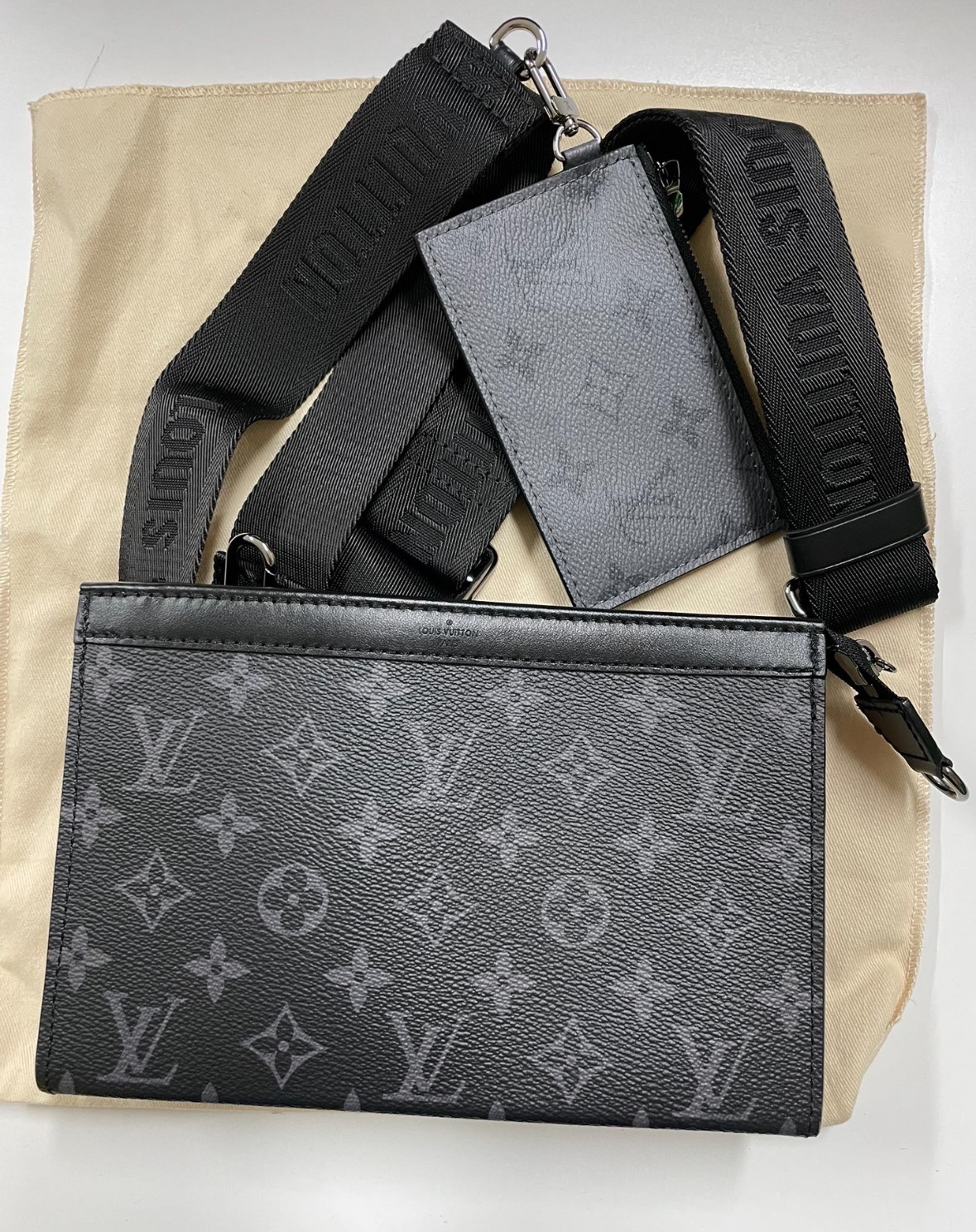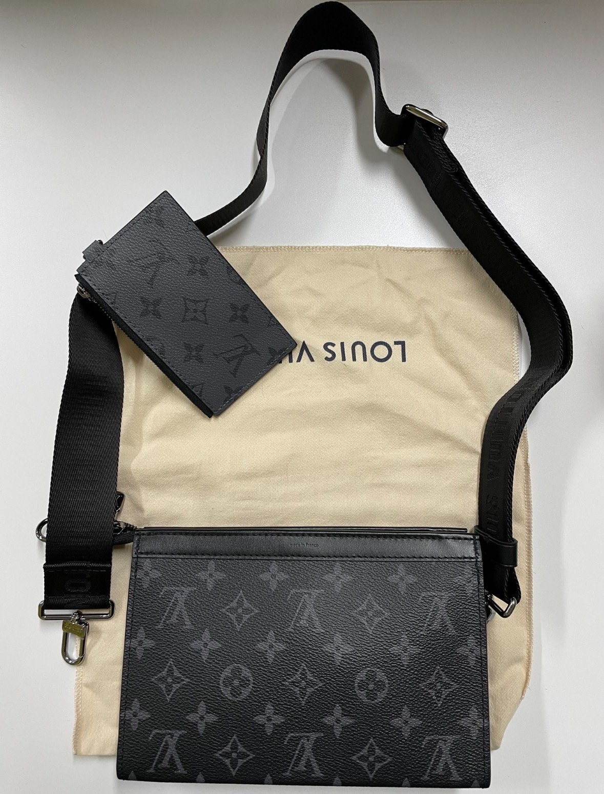 하우스의 포쉐트 보야주에서 영감을 받은 가스통 웨어러블 월릿. 모노그램 이클립스 리버스 캔버스 소재. 탈착 가능한 텍스타일 소재의 조절형 스트랩에 탈착형 카드 홀더를 연결하여 비접촉식 결제 또는 교통카드 결제를 간편하게 할 수 있는 디자인. 스마트폰을 포함한 데일리 필수품을 보관하기에 좋은 사이즈.