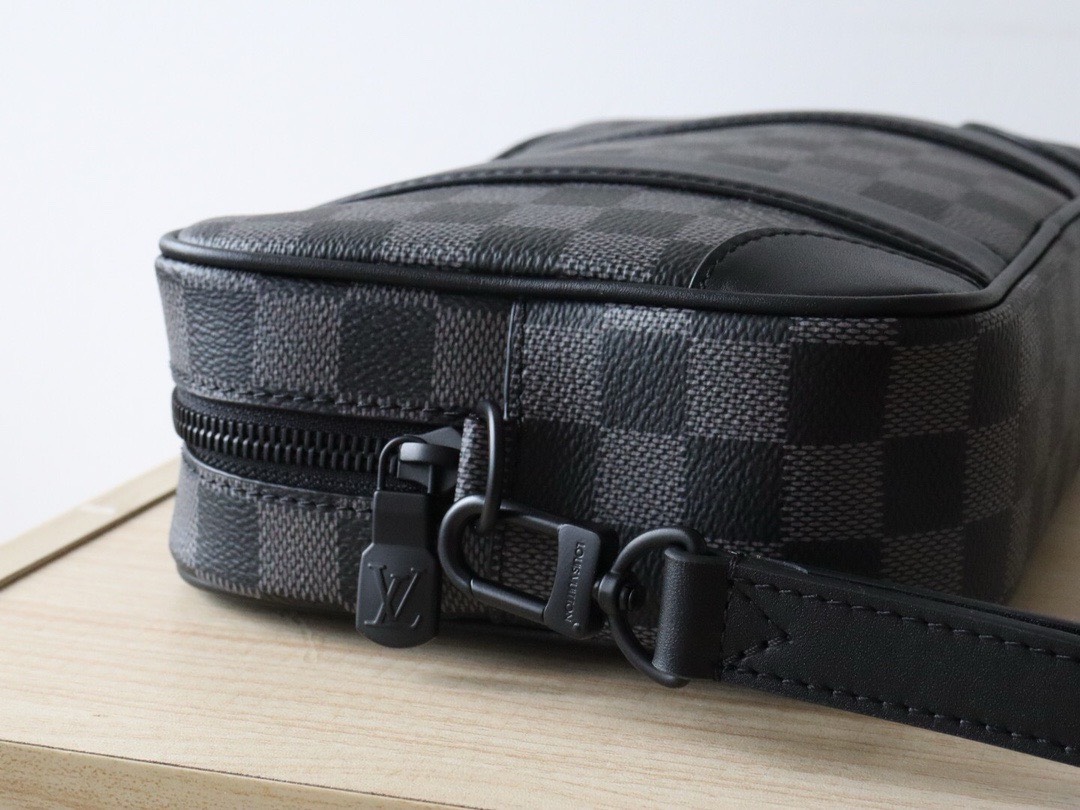 모노그램 이클립스 캔버스 소재로 선보이는 포쉐트 카사이 파우치. 강화된 모서리, 블랙 색상의 앞면 가죽 밴드 및 뒷면 지퍼형 포켓이 돋보이는 디자인. 소지품을 손쉽게 넣고 꺼낼 수 있는 넓은 지퍼형 입구. 세 개의 플랫 포켓과 10개의 카드 슬롯을 구성한 내부. 클러치로 활용하거나 탈착형 손목 스트랩을 활용해 휴대할 수 있는 아이템.